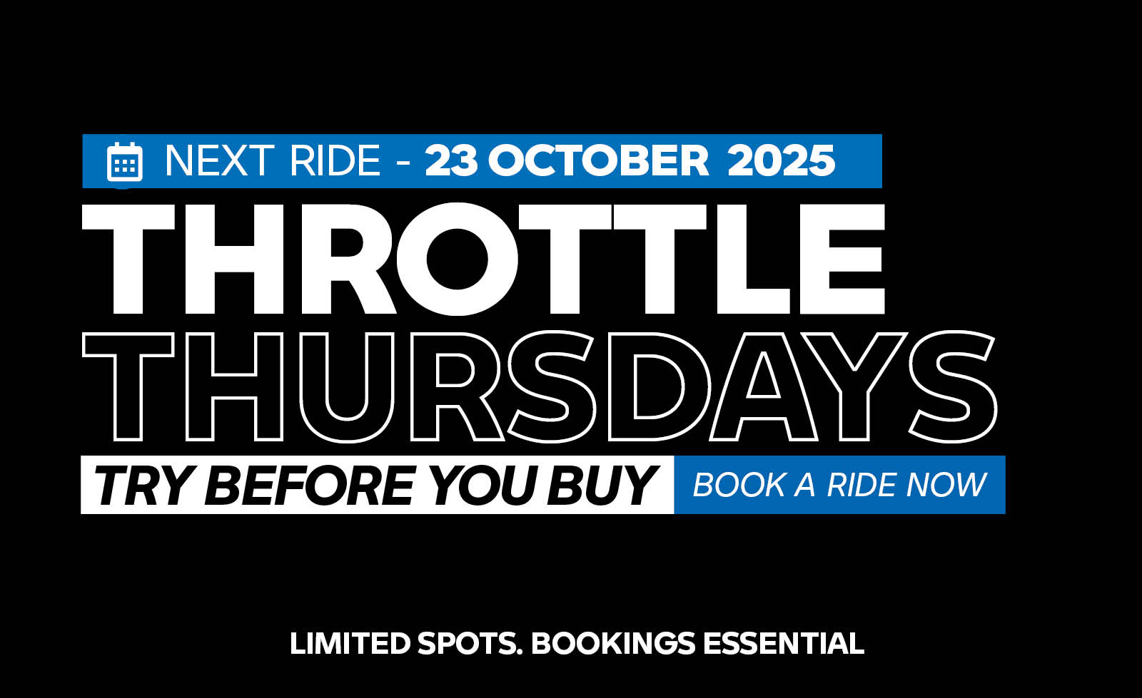 Throttle Thursday is back on 23 October, giving you the ultimate opportunity to experience the latest BMW motorcycles in action. From precision-engineered adventure bikes to high-performance road machines, you’ll have nearly 20 models to test, compare, and enjoy.